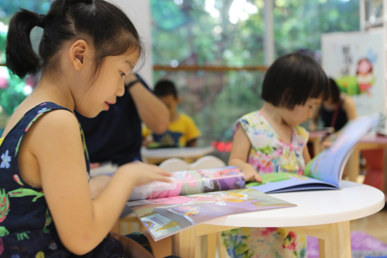 彩虹繪本館四周是嬰幼兒啟蒙圖書、繪本等。白云悠悠、陽光燦爛,孩子們徜徉在繪本館里,必將熏陶成型,茁壯成長。