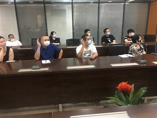 理論知識培訓(xùn)結(jié)束后,吳教官帶領(lǐng)參訓(xùn)人員來到集團總部大院一處空地分組進(jìn)行滅火器實際操作演練。在其指導(dǎo)和親自示范下,參訓(xùn)人員依序練習(xí)了滅火器的使用方法,初步掌握了滅火器“一拔二壓三握四噴”的操作要訣。培訓(xùn)達(dá)到了應(yīng)有的效果和目的。