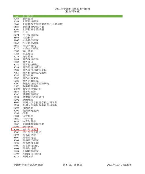 12月27日,中國科學技術信息研究所發布了2021年中國科技論文統計結果,《統計與決策》在2018年首次入選后,今年繼續入選《2021年版中國科技核心期刊目錄(社會科學卷)》。