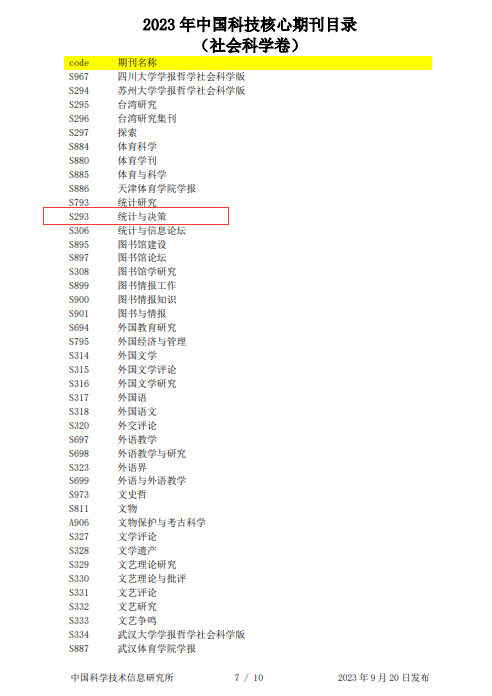 據《2023年版中國科技期刊引證報告(核心版)》統計,2023年收錄2151種中國自然科學領域期刊,發表論文45.67萬篇;社會科學領域期刊403種,發表論文5.00萬篇。中國科技核心期刊的影響因子平均值為1.048,期刊的總被引頻次為1683次。《統計與決策》在2017年首次入選后,今年第7次進入《中國科技核心期刊目錄》(社會科學卷)。