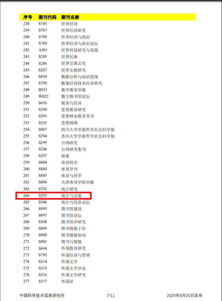 《統計與決策》入選“2024年中國科技核心期刊目錄”