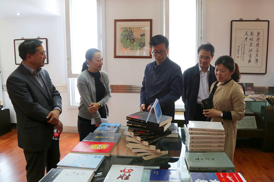 那拓祺向調研組一行介紹了集團歷史沿革和近年來的發展成效,特別是2017年以來,集團堅持突出主業發展、突出創新發展,圍繞“出版+”“文化+”發展輔業,堅持做好打基礎強管理,建設高素質專業化人才隊伍等方面的經驗和做法。