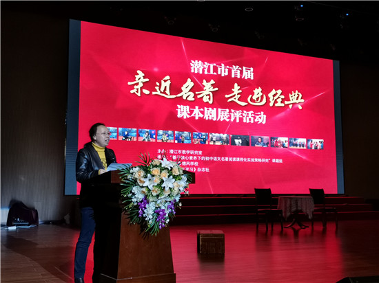 “文學(xué)構(gòu)造世界,舞臺(tái)演繹人生”。潛江市教育局副局長(zhǎng)伍孝江在開(kāi)幕致辭中提到,潛江市教育局教研室舉辦的首屆課本劇展評(píng)活動(dòng),各個(gè)學(xué)校的師生將文學(xué)名著選段、片段改編成劇本由學(xué)生演繹,課本劇的展評(píng)融欣賞性、娛樂(lè)性及教育性于一體,課本劇讓語(yǔ)文課更有效更精彩,是深受學(xué)生喜愛(ài)的學(xué)習(xí)與實(shí)踐方式。本次活動(dòng)是落實(shí)新課程育人方式改革的具體實(shí)踐與探索,對(duì)全市語(yǔ)文教學(xué)乃至課程整體改革具有啟發(fā)意義,這種探索精神也值得各學(xué)科、各學(xué)段老師借鑒學(xué)習(xí)。