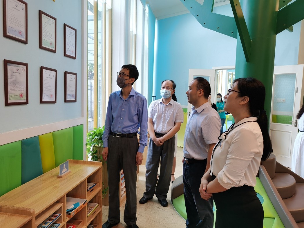參觀中,黃國斌詳細詢問了幼兒園目前的招生情況、幼兒在園適應情況及園所防控措施。