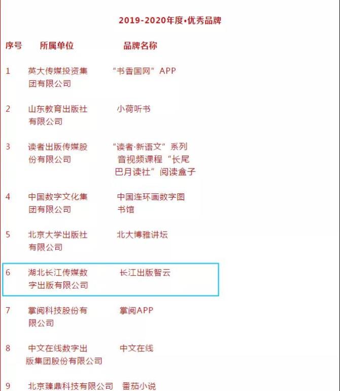 “長江出版智云”獲評2019-2020年度數字出版優秀品牌