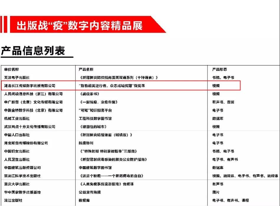 長江數字“致敬最美逆行者,眾志成城抗新冠”微黨課、“長江云閱讀”數字農家書屋亮相線上展區