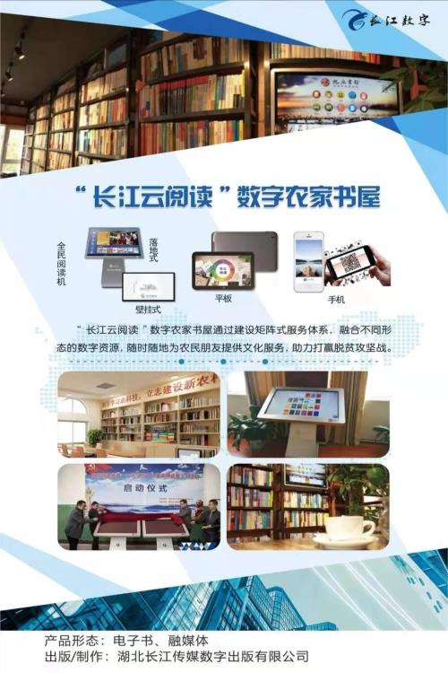 “長江云閱讀”數字農家書屋展示于助力脫貧展區。數字農家書屋運用信息技術,創新性地將資源與平臺、內容和渠道完美融合,為全省農民提供權威、專業、全面的數字化閱讀服務。產品通過PC網站、微信閱讀平臺以及長江云數字閱讀機,以便捷的使用方式和應用場景為廣大農民朋友提供隨時隨地的文化服務,助力打贏脫貧攻堅戰。