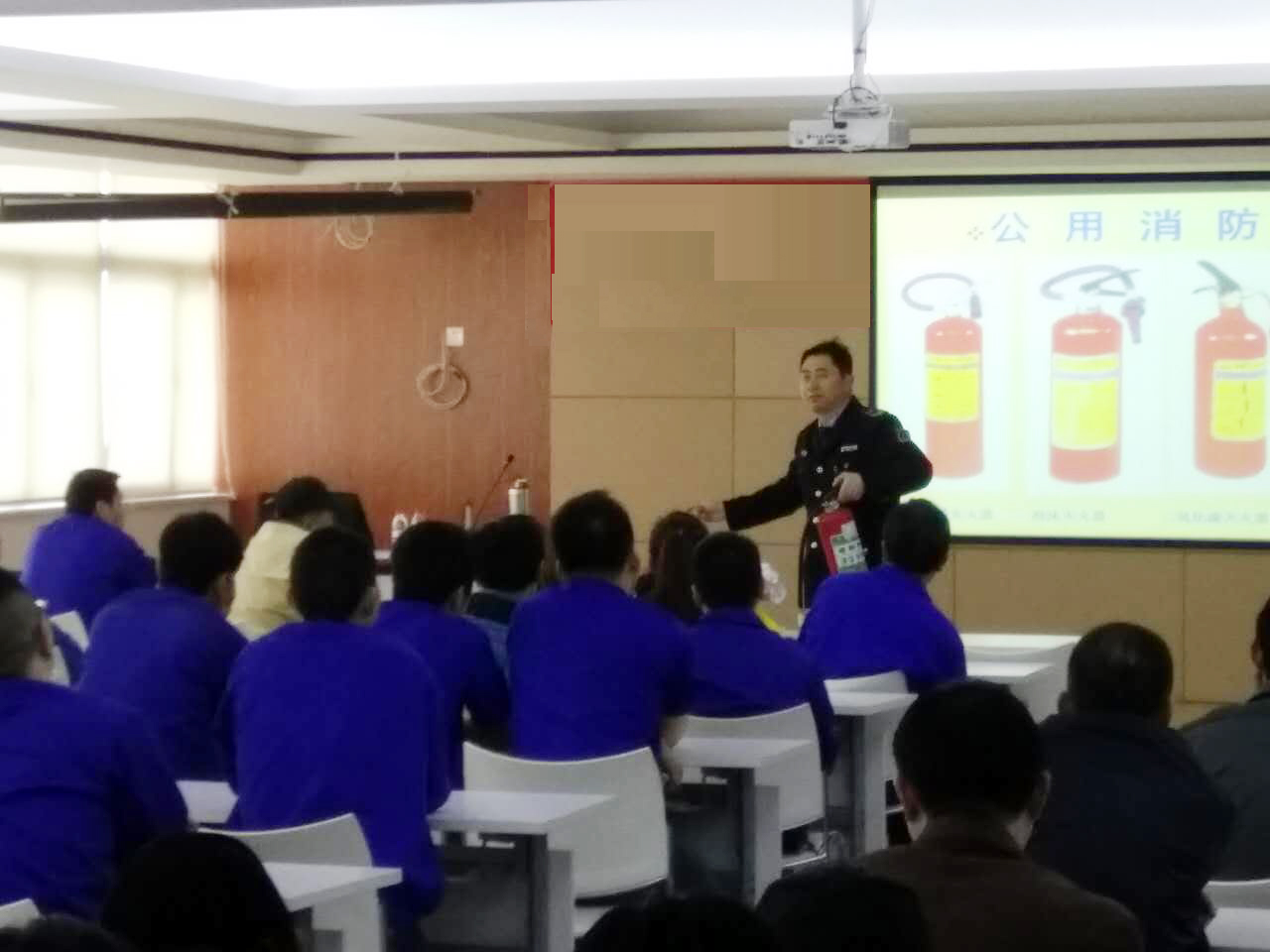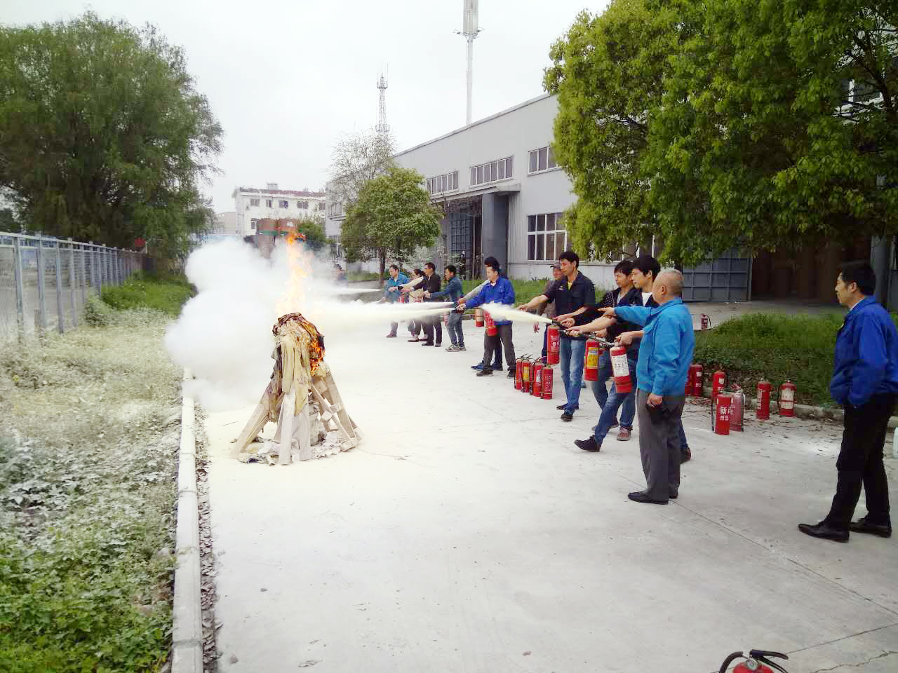 員工實(shí)地使用滅火器