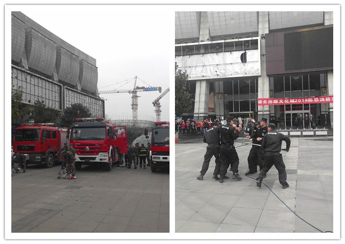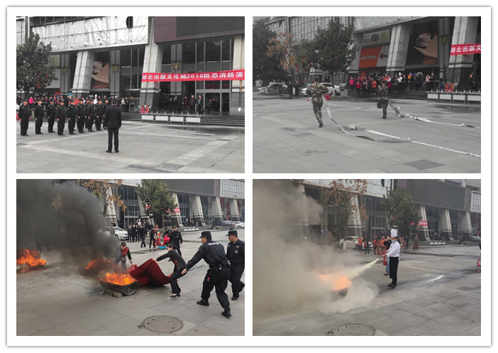 2018年12月21日上午,湖北長江東光物業和洪山區消防大隊南湖中隊官兵在湖北出版文化城聯合舉行防恐消防演練。