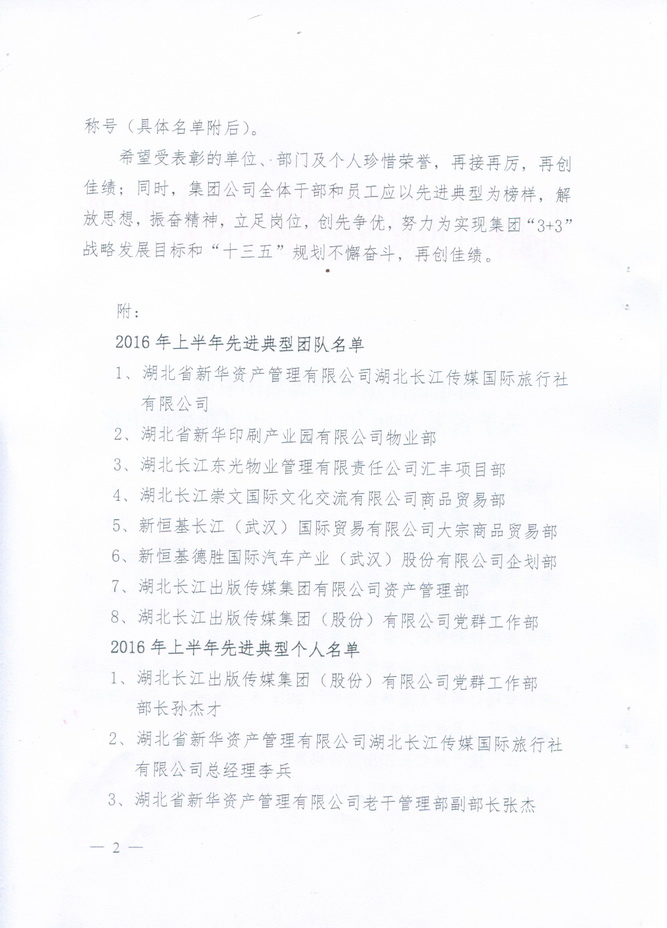 集團(tuán)公司2016年上半年先進(jìn)典型表彰