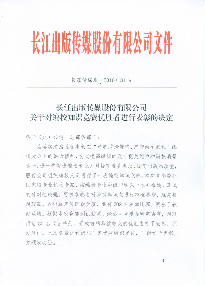 編校知識競賽優勝者表彰決定