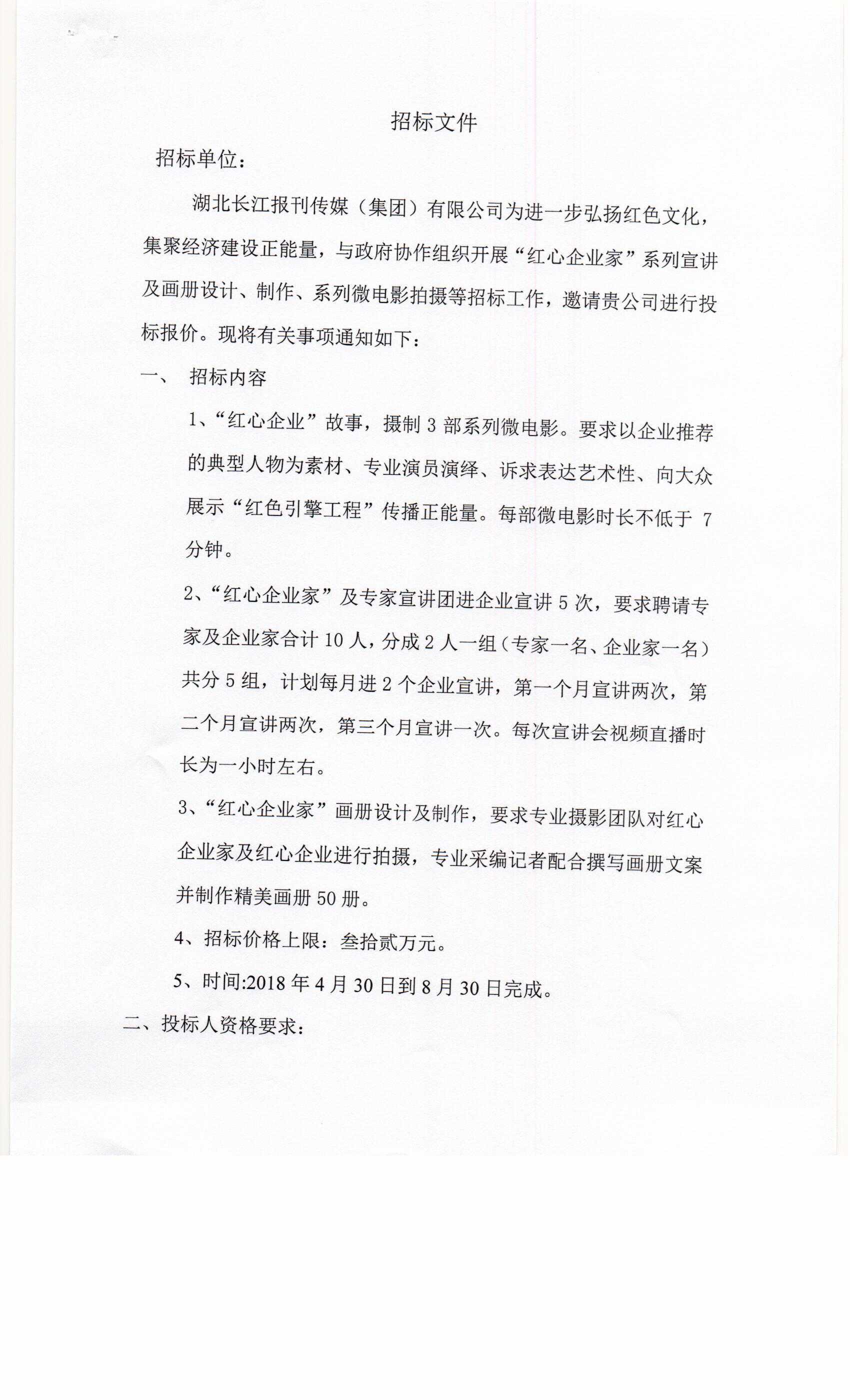 報刊集團“紅心企業(yè)家”微電影系列項目招標邀請函及招標文件
