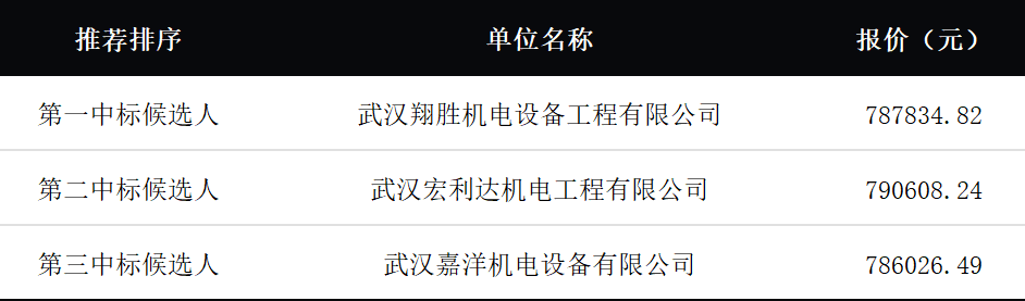 湖北省成套招標股份有限公司受業主的委托,就本項目進行公開招標,經評標委員會評審、招標人確認,現將中標結果公示如下:
