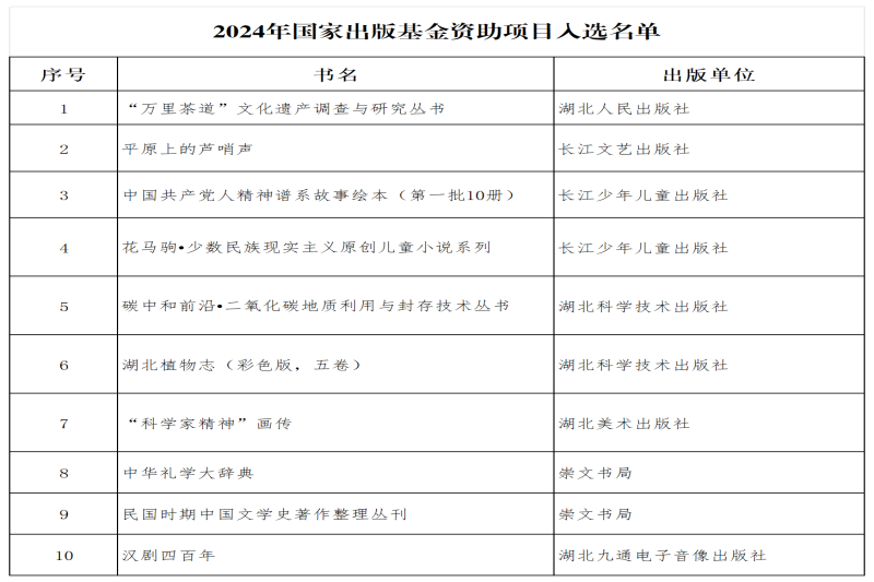 長江傳媒10個項目入選2024年度國家出版基金資助項目名單