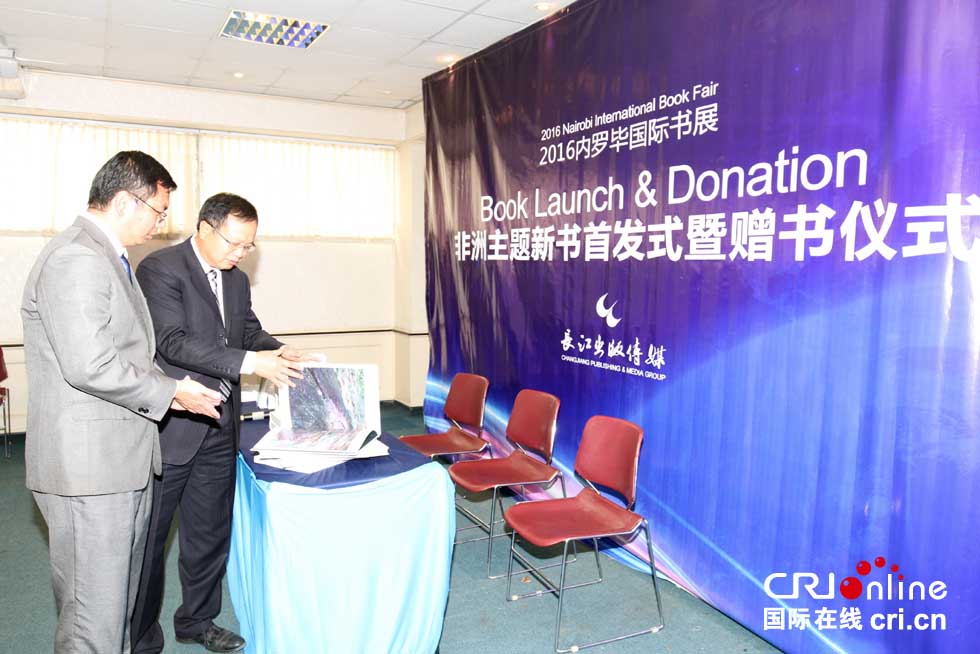 此次新書首發和贈書儀式在內羅畢國際書展期間舉行,長江出版傳媒集團、中國科學院中-非聯合研究中心、中央電視臺法語國際頻道三家主辦方向中國駐肯尼亞大使館、肯尼亞國家圖書館及肯尼亞國家博物館贈送了《肯尼亞常見植物》、《肯尼亞國家遙感地理圖集》及《同舟共濟一甲子-中非建交60年人物錄》等首發新書。