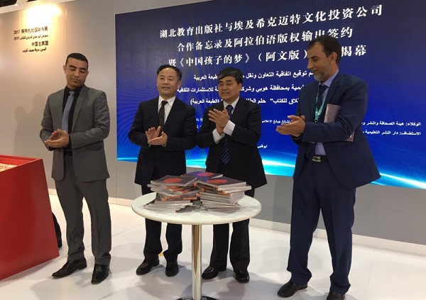 4月26日,在第27屆阿布扎比國際書展上,湖北教育出版社與埃及希克邁特文化投資公司簽署成立“長江傳媒中埃編輯部”合作備忘錄及阿拉伯語版權輸出協議,并舉行了《中國孩子的夢》阿文版首發揭幕。國家新聞出版廣電總局副局長吳尚之、中央宣傳部出版局副局長張擁軍、埃及出版商協會負責人米索利、國家新聞出版廣電總局報刊司司長李軍和進口管理司司長蔣茂凝、湖北省新聞出版廣電局副局長鄢桃生出席了活動。