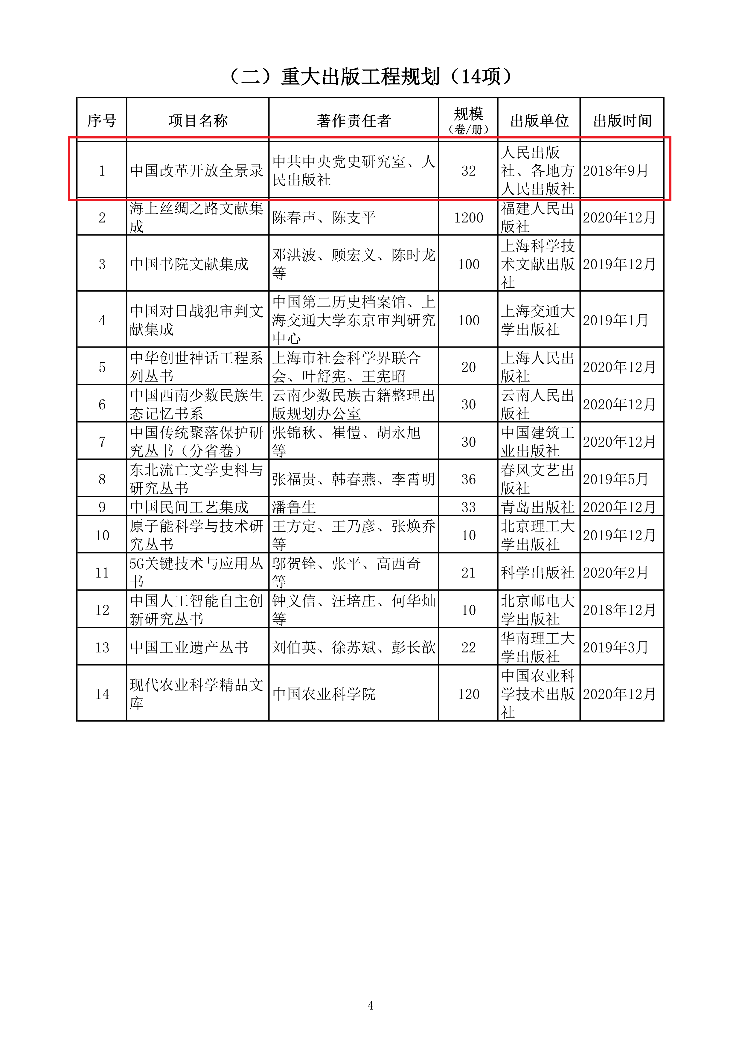 近日,國家新聞出版署公布了國家重點出版物出版規(guī)劃調(diào)整情況,確定《“十三五”國家重點圖書、音像、電子出版物出版規(guī)劃》增補項目767個,其中圖書項目709個、音像電子出版物項目58個,人民社《袁中道全集箋校》入選,另有人民出版社統(tǒng)籌安排,各地方人民出版社聯(lián)合出版的《中國改革開放全景錄》入選。