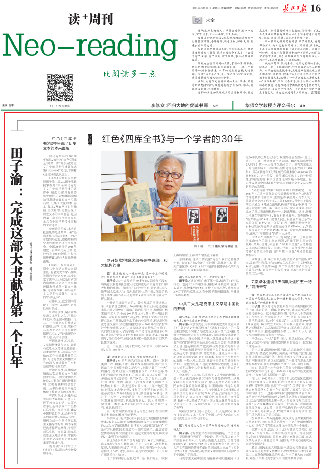 長江日報:湖大教授田子渝30余年編成“紅色《四庫全書》”