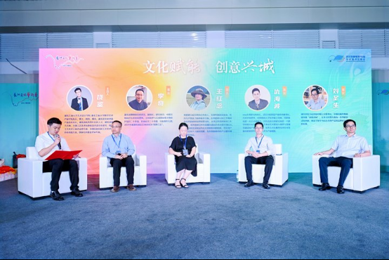 隨后的文化創意沙龍環節,湖北省文化創意產業協會會長饒鑒、湖北省博物館副館長李奇、黃鶴樓公園管理處文創中心負責人王紅念、武漢文化創意產業協會秘書長仇海波、湖北倍悅文化創意有限公司董事長劉圣生圍繞“文化賦能 創意興城”的主題,就荊楚文化創新進行了一場思想碰撞和智慧激蕩的交流。