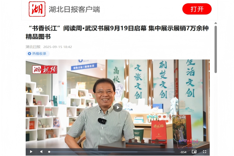 湖北日報 |“書香長江”閱讀周·武漢書展9月19日啟幕 集中展示展銷7萬余種精品圖書