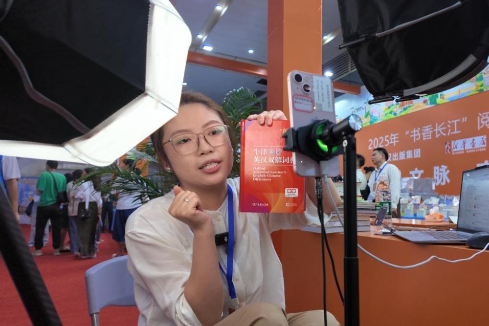參展商通過直播推介《牛津高階英漢雙解詞典》王宇凡攝